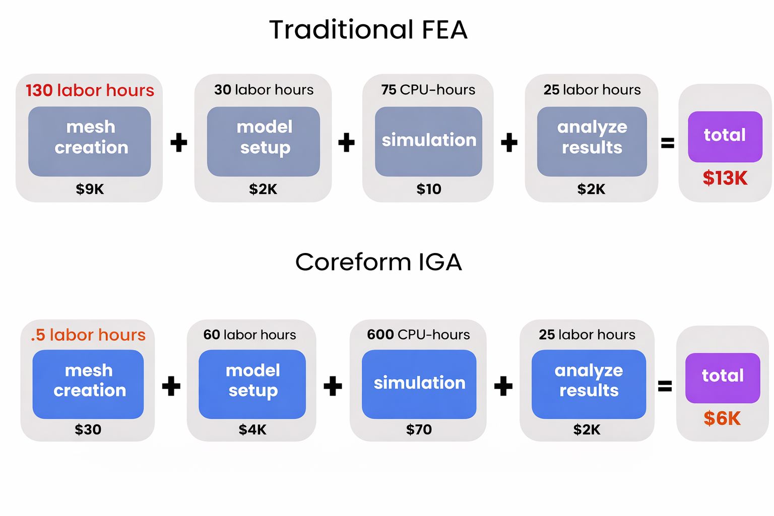 Mesh generation is a time and labor-intensive process that provides no value to the eventual customer of the engineering analysis, but is simply required by the nature of hexahedral elements. As products become more complex, and as CAD advances to capture more details of geometry, this becomes even more expensive. Many product teams can’t afford to perform these analyses on their products at all.